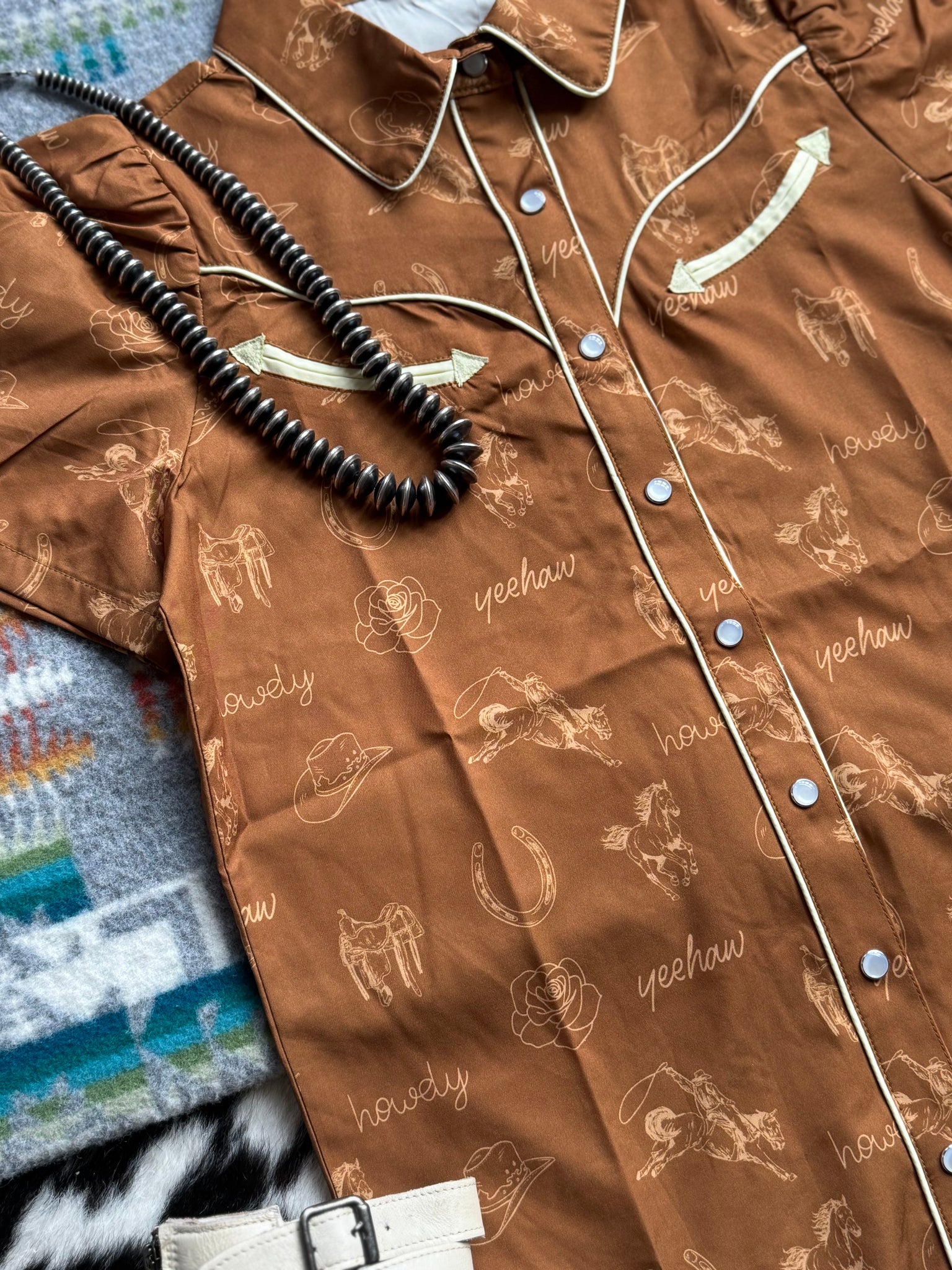 Introducing The Copeland Top - the ultimate addition to a western fashionista's wardrobe. This top features a cute western details with cream arrow accents and pearl snaps. Perfect for all your events, this top will elevate your style and turn heads.