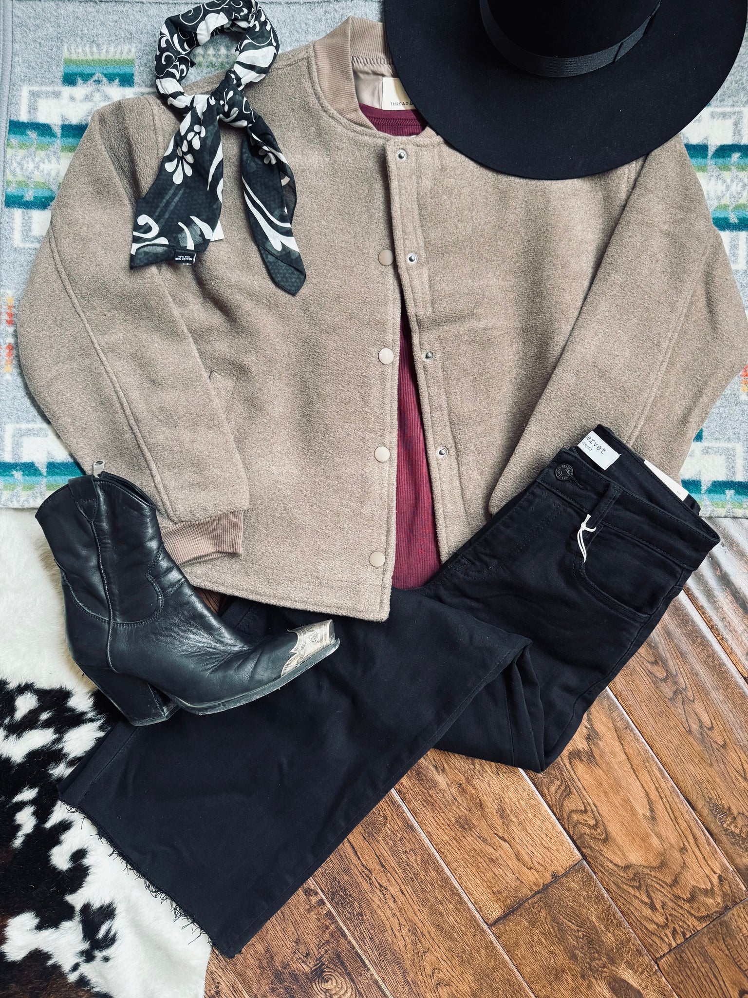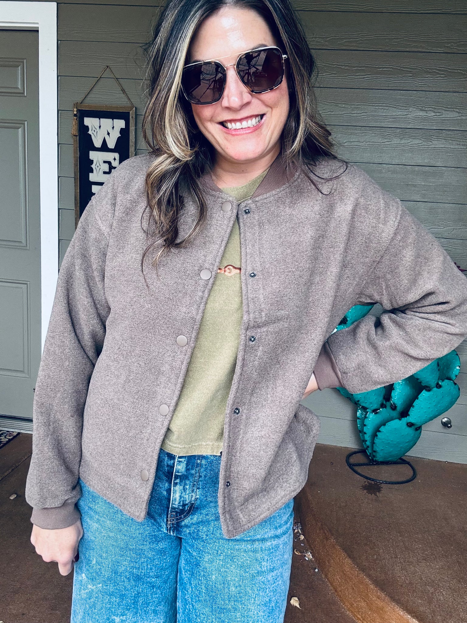 The Harper Jacket: A sophisticated take on the classic bomber, with a snap button closure and a wool-like fabric. Fully lined, it's versatile for any occasion. Elevate your style and dress to impress.
